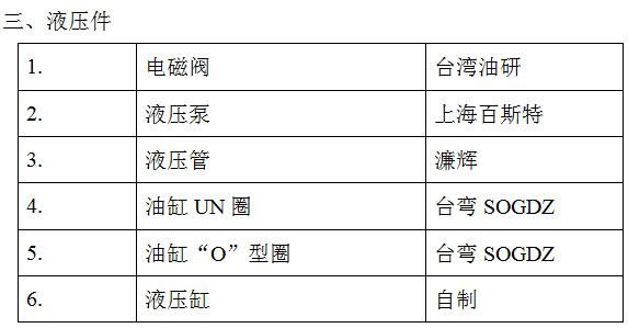 14 | 油泵及電磁閥采用國際標準一線品牌。 |